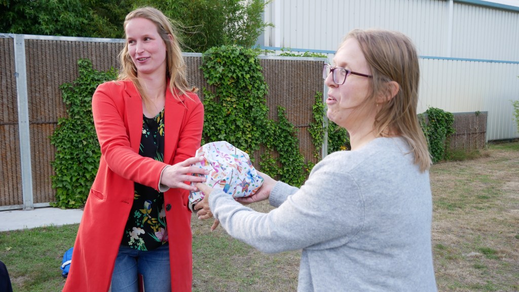 Na de laatste trainingsavond was er een kort afscheid. Voorzitter Wendy Kanters sprak een mooi dankwoord en overhandigde haar een welverdiend cadeau.