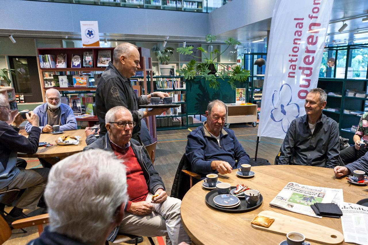 Al ruim voor 10 uur druppelden de eerste belangstellenden binnen voor een kopje koffie en wat lekkers. Hierbij ook af en toe met een blik van herkenning (hé, jij ook hier?) tussen oud-volleyballers die elkaar ooit op het veld zijn tegen gekomen. De van overheidswege verplichte corona QR-code was voor sommigen nog even wennen, maar gelukkig ging dit meestal prima.