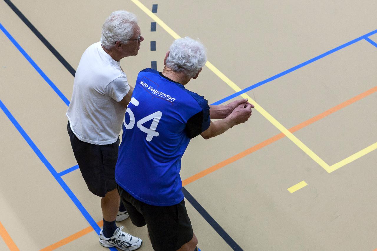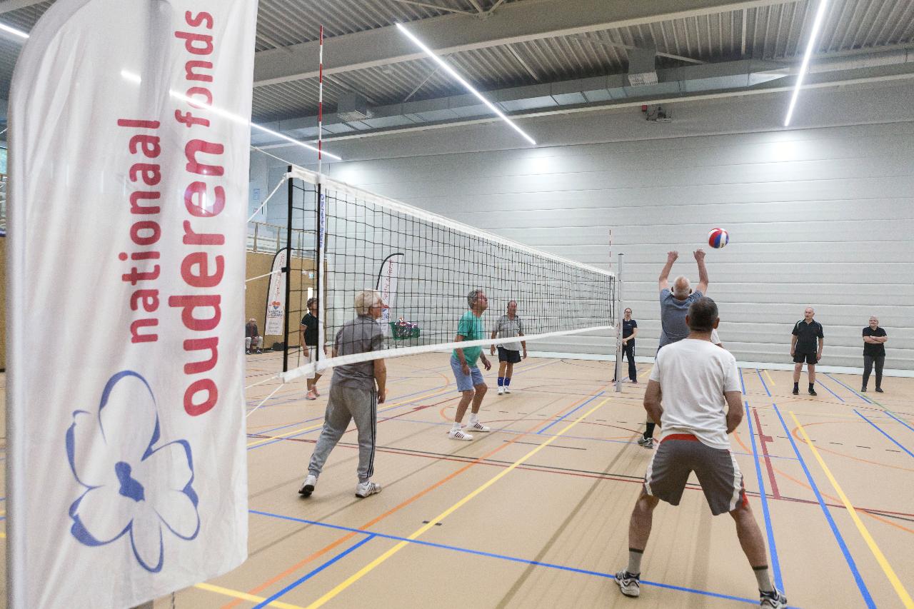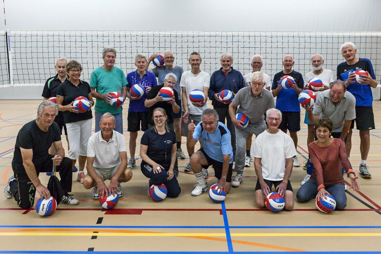 De eerste OldStars training in Het Huis van Eemnes vanochtend, dinsdag 5 oktober, was een daverend succes! Na een kopje koffie en een welkomswoordje van zowel de voorzitters van beide verenigingen als van het Nationaal Ouderenfonds, werd richting kleedkamers vertrokken. Na een warming up en wat oefeningen, werd er een gezellig partijtje volleybal gespeeld.