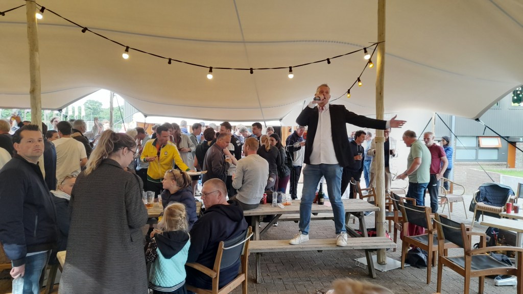In de wedstrijdtent was het de gehele dag een drukte van belang. Standen werden