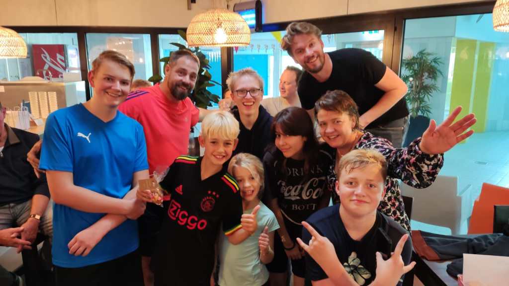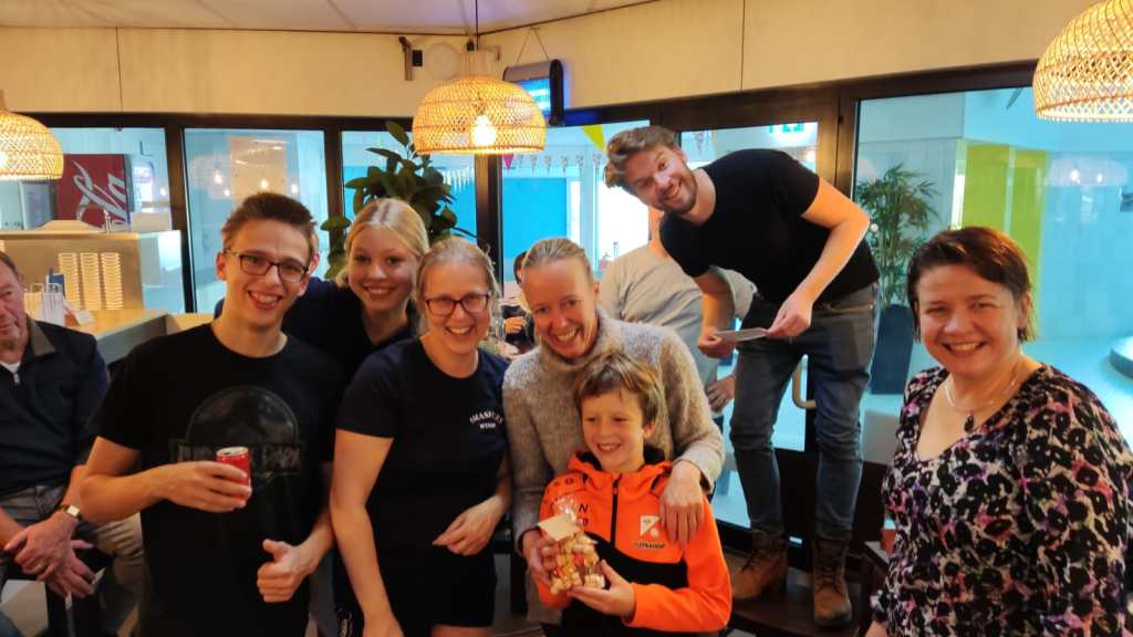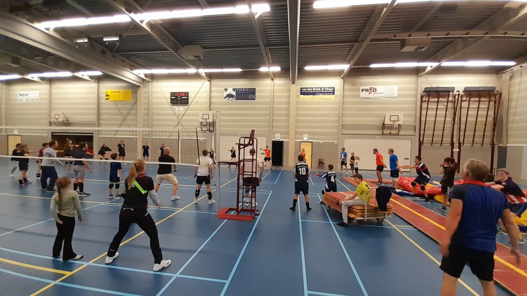 Na afloop van de wedstrijden stond er voor alle jeugd wat drinken en patatjes klaar in de Restobar. Hier werd nog nagepraat over de grappige momenten van de volleyballende ouders.