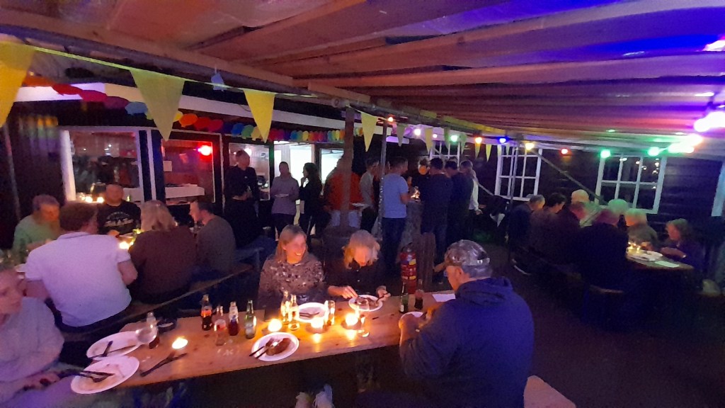 In de avond werden huidige leden en oud leden uitgenodigd voor een barbecue op het terrein van scouting Raboes. Het was een gezellig weerzien voor sommige mensen. Er werden herinneringen opgehaald en op groot scherm kon men foto’s van vroeger zien. Dank aan scouting Raboes voor het gebruik van hun locatie.