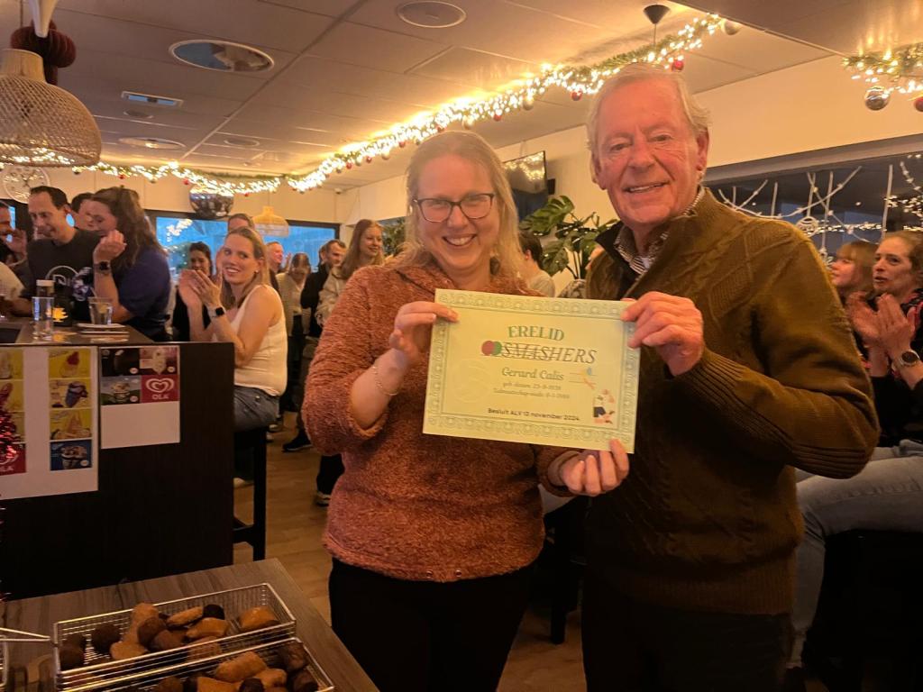 Met deze benoeming tot erelid willen we Gerard bedanken voor zijn jarenlange toewijding en alles wat hij voor The Smashers heeft betekend. Het is een eer om hem deel van onze geschiedenis en toekomst te noemen.